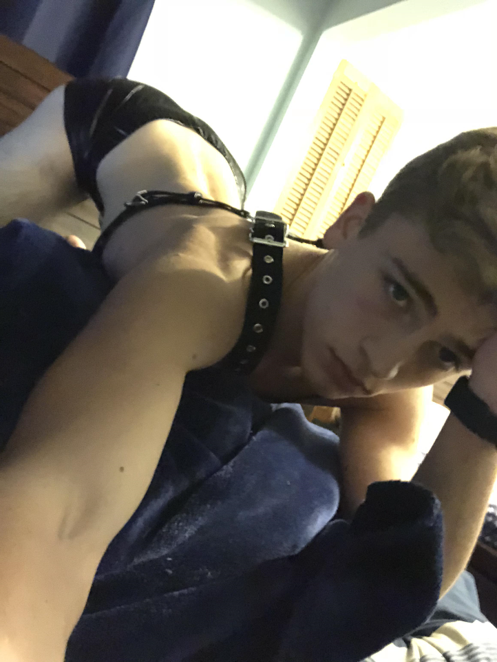 19yo blonde twinks porn shows off leather gear cock rings