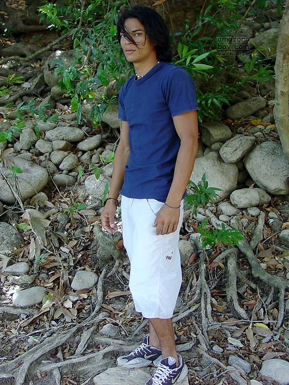 Cute long-haired Latino twink shows off outdoors boys porn