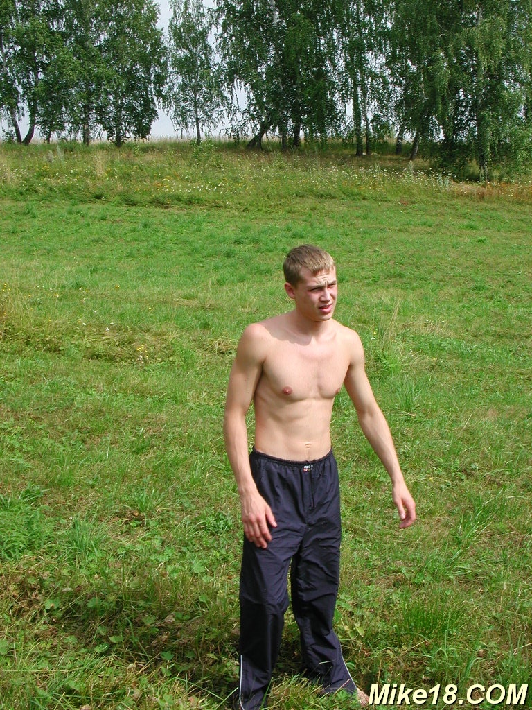 Muscular blond twink solo outdoors gay porn