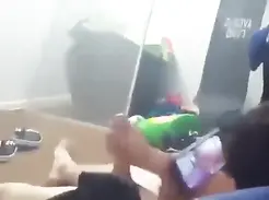 Ginger strokes his dick