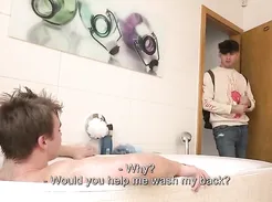 His roomie is not happy with the clean -up in the kitchen and will punish him hard