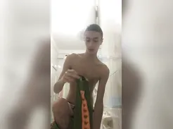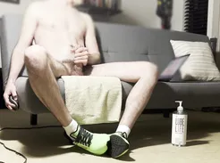 Lovely German Twink in Socks And Sweatshirt Green, Masturbates And Ejaculates ... .
