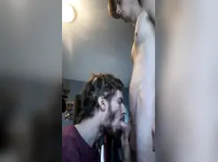 Adorable young twink sucks & jerks his friend’s dick & let’s him cum on his face