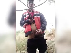 Thai twink wanks outside