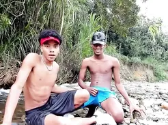 horny Latins in a river