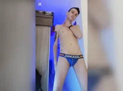 Ravishing Blonde Twink Muscular in Smog Boxer Shorts , Jerks Off And Cums On Him .