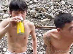 two Asian nude in nature