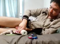 [ABX][3][719] - Twink unloads lots of cum after stroking his big dick with a vibrator