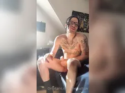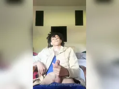 Smooth EMO Twink caresses, fingers, & then Jerks his Cock to a Hot Self-Facial Porn