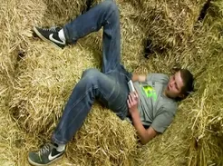 A Slightly Chubby Young Twink Hides in A Barn To Jerk Off And Cum On His Belly ... .