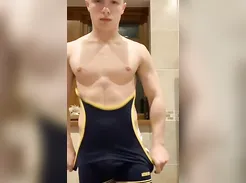Lovely German Twink in Socks And Sweatshirt Green, Masturbates And Ejaculates ... .