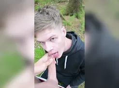 Gay teen couple in forest