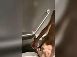 Boy strips and cums in a public bathroom
