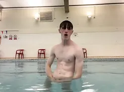 Swimmer with big cock chatting naked in open showers with other sexy teammates!!