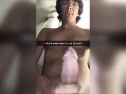 Twink With Glasses And Curly Hair Jerks And Cums On Her Face And in His Own Mouth ...