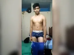 Boy flexes, not nude