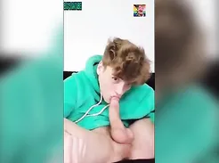Teen Jack Roys gets a cum mouth facial & slurps on delicious cum covered cock head