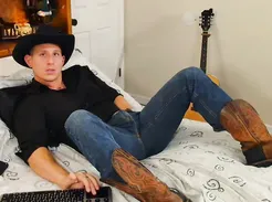 Cowboy Jerks Lying on Bed