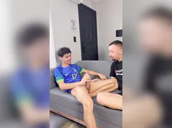 Twink in A Locker Room, Fucks His Soccer Partner Who Was Watching Him Masturbate .