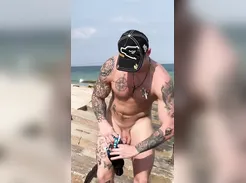 Hot tatted lad changes speedos at the beach