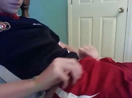 lad cums on tee shirt