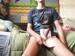 [ABX][3][298] - Young gay after a shower watching porn and jerking off a huge dick