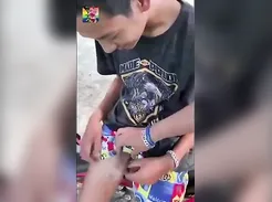 A Slightly Chubby Young Twink Hides in A Barn To Jerk Off And Cum On His Belly ... .