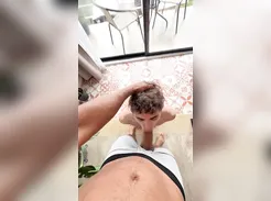 I fucked and sucked him at the same time until we both came all over his torso, I the