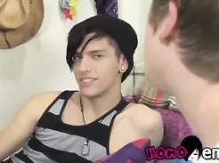 Fun, not shy, cute Asian strokes his dick, doesn't cum in front of his friends.