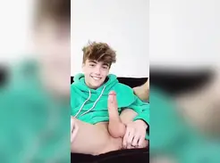 Lovely German Twink in Socks And Sweatshirt Green, Masturbates And Ejaculates ... .